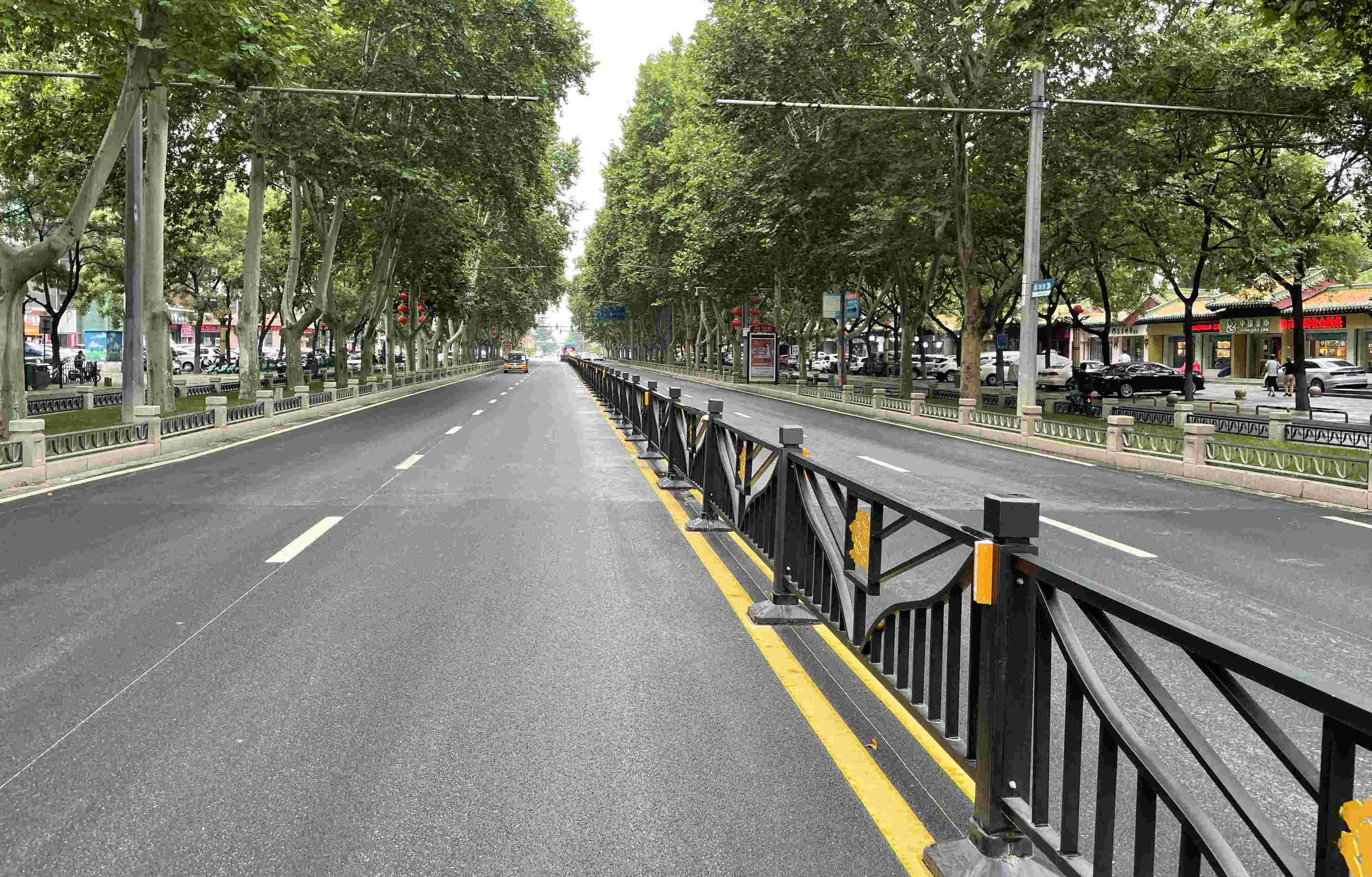 邙嶺大道(周山大道至國花路立交段)提升改造工程,改造區段長約2 公里,紅線寬 60 米。工程內容句括; 路面病害處理,路緣石修復,雨污水管道、檢查井及雨水口改造等排水設施改造,交通標線施畫,飛線入地等。